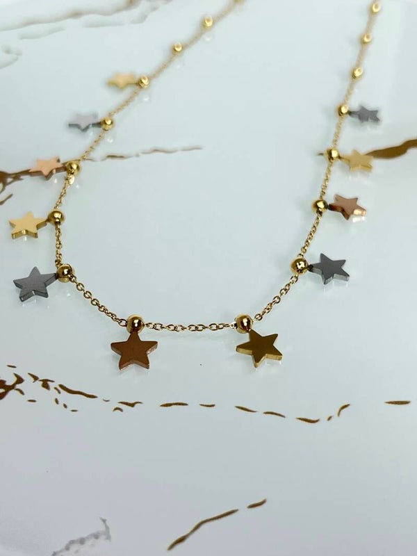 Stella : Collier à étoiles doré et silver en acier inoxydable
