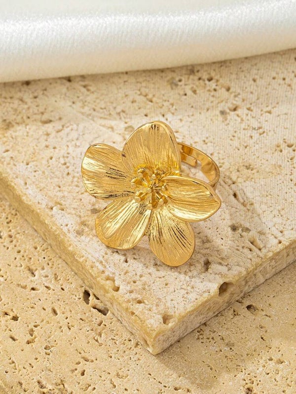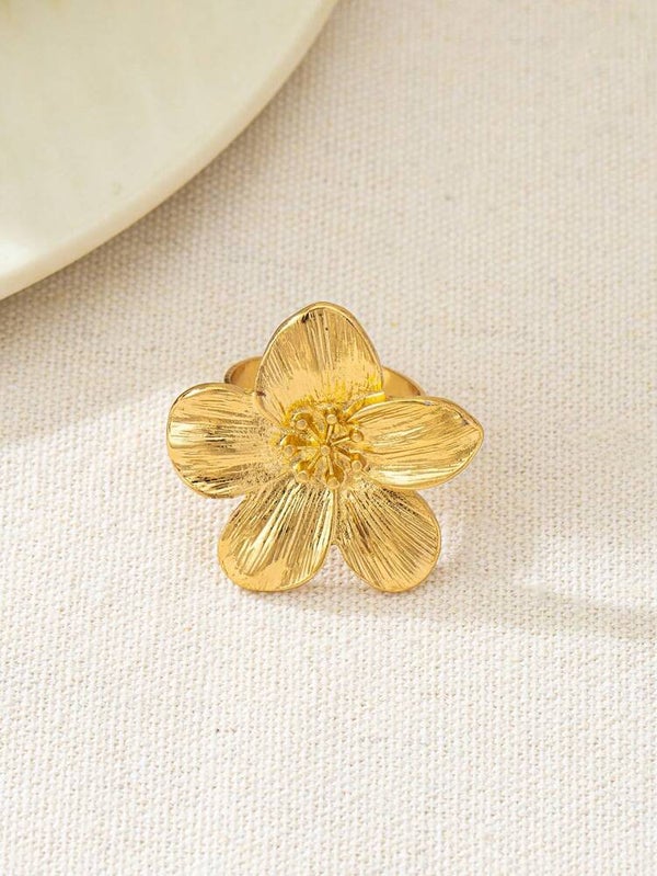 Bague ajustable en fleur en acier inoxydable élégante, avec revêtement en or 18 carats PVD, étanche