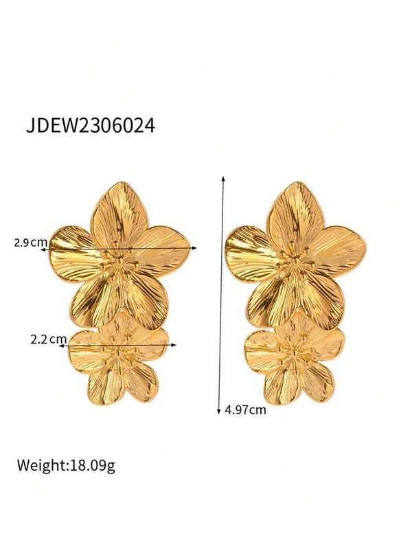 1 paire Boucles d'oreilles en fleurs, nouvelles boucles d'oreilles tendance avec couleurs multiples, boucles d'oreilles clous à double couche de fleurs, boucles d'oreilles simples et douces, boucles d'oreilles tendance européennes et américaines personnalisées