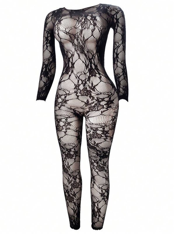 Lingerie sexy : collant de corps en résille manches longues et évidé , standard