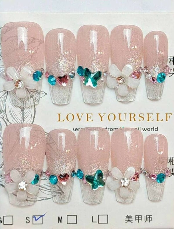 10 pièces de paillettes d'ongles finies, faites à la main, portables, avec fleur de printemps et d'été